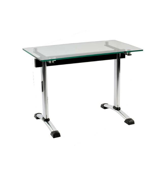 CARACTERISTICAS El escritorio 120×60 es una estructura con pata tipo italiana con acabado cromado o sistema de pintura electroestática, travesaño en tubo rectangular 3″ x 1 1/2″ cal 18, superficie en tablex 25 mm laminada con forma borde o canto rígido; superficie en vidrio sencillo 10mm, punteras y niveladores de piso plásticos