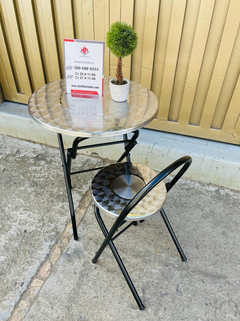 Mesa plegable redonda de 60 de diametro y silla plegable redonda de 35 de diametro