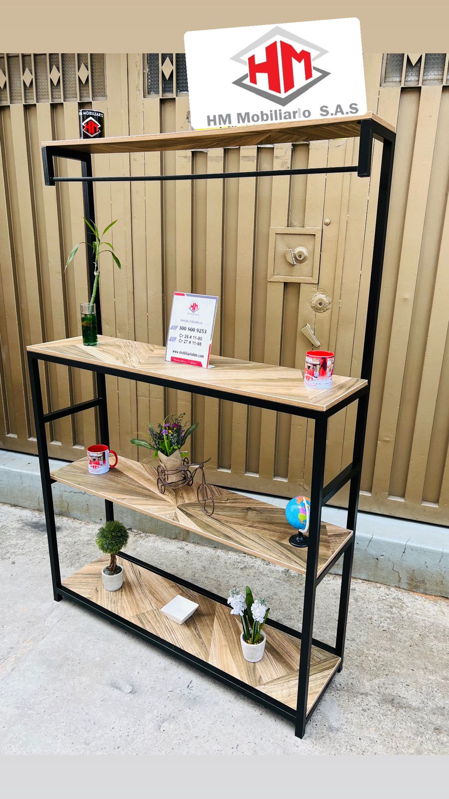 Mueble decorativo en tubo de 1 pulgada cuadrado con acabados en pintura electroestatica ,y superficies en formica de 15 mm