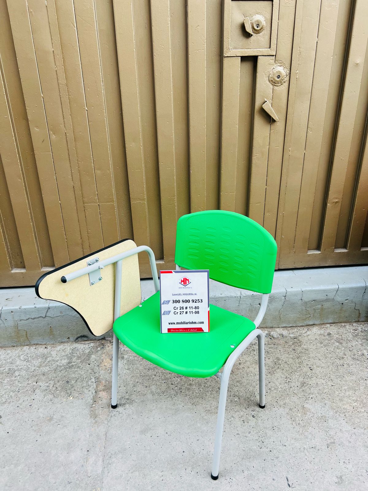 Pupitre universitario con brazo en madera enchapada abatible ,con estructura metalica en tubo redondo 7/8 calibre 18 acabados en pintura electroestatica