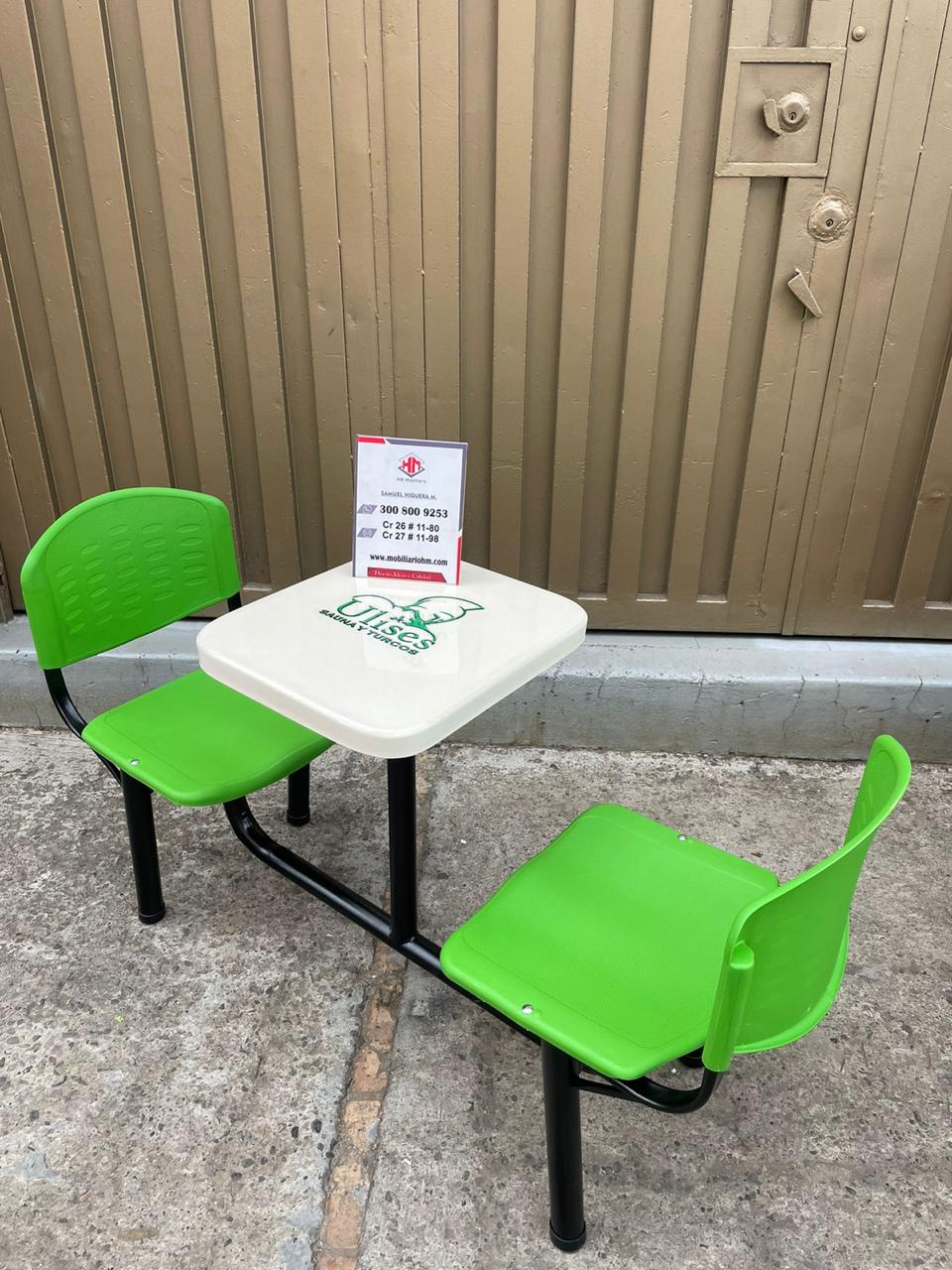 wimpy en estructura metálica en tubo redondo HR acabado en pintura electrostática, asiento y espaldar en polipropileno (variedad de colores),superficie en resina de 50×50 con personalización