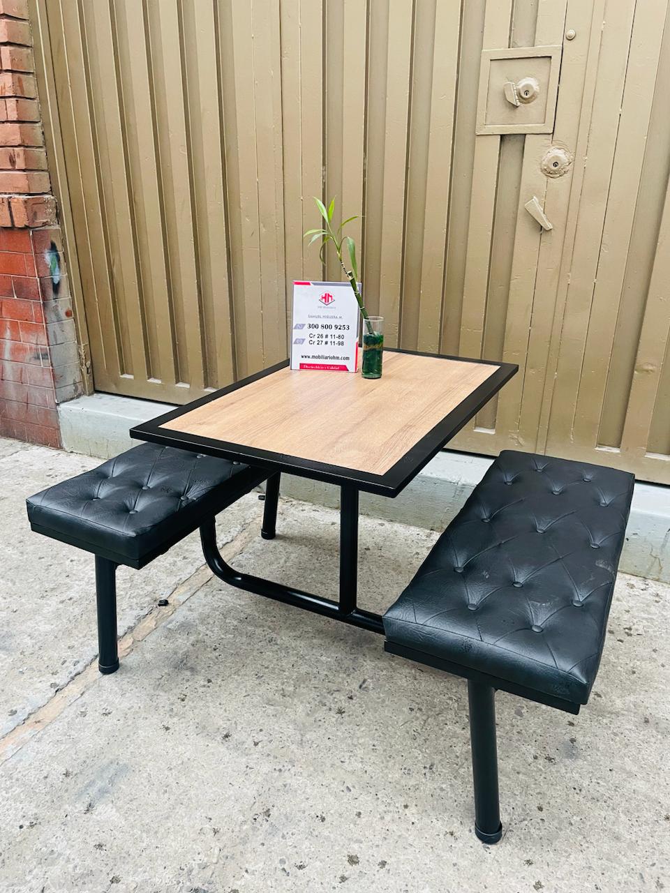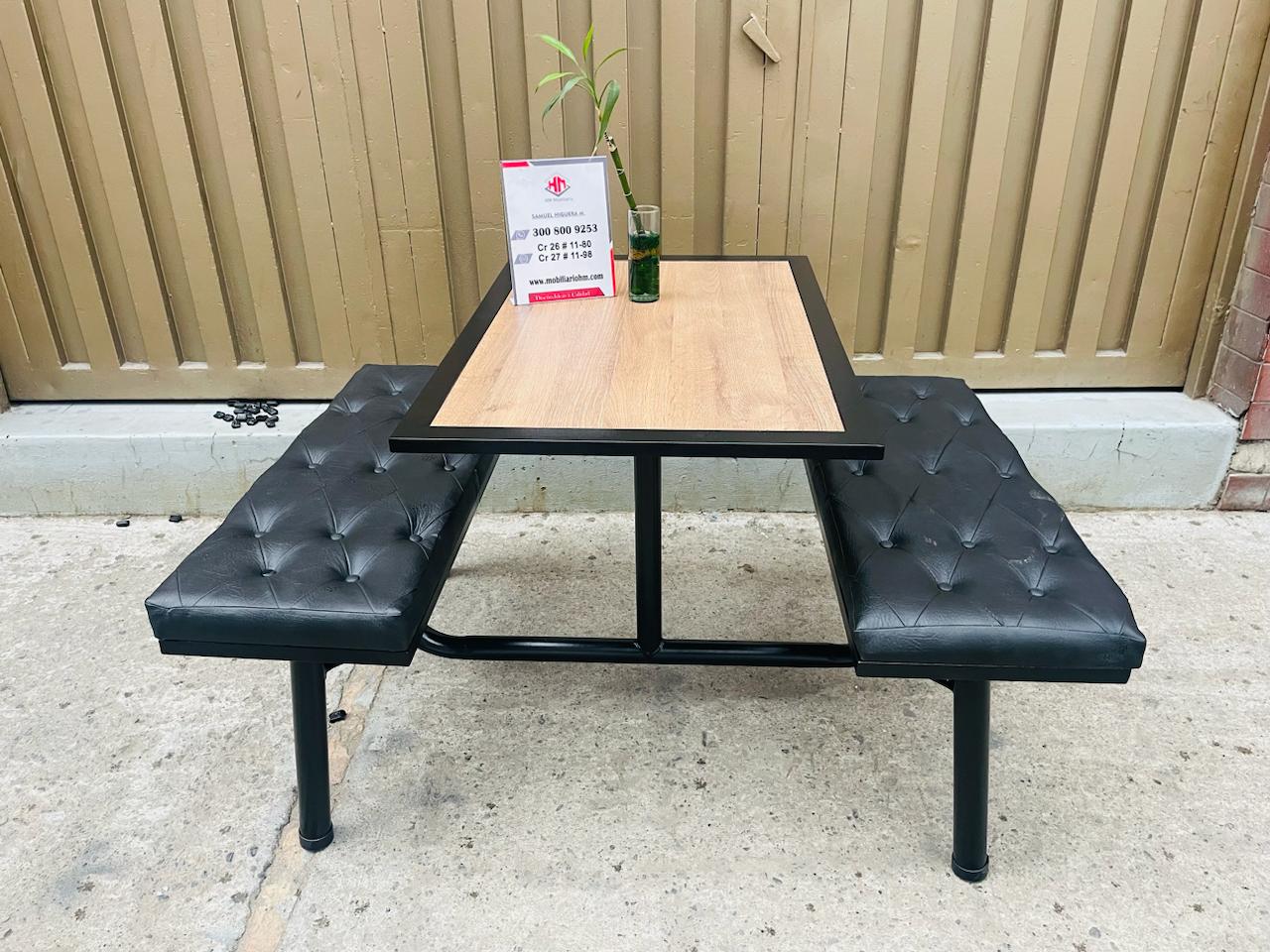 Wimpy 4 puestos en tubo HR acabados en pintura electrostática, con superficie borde tubo y formica de 15mm color macula de 90×60, asiento tapizado en espuma rosada capitoneado